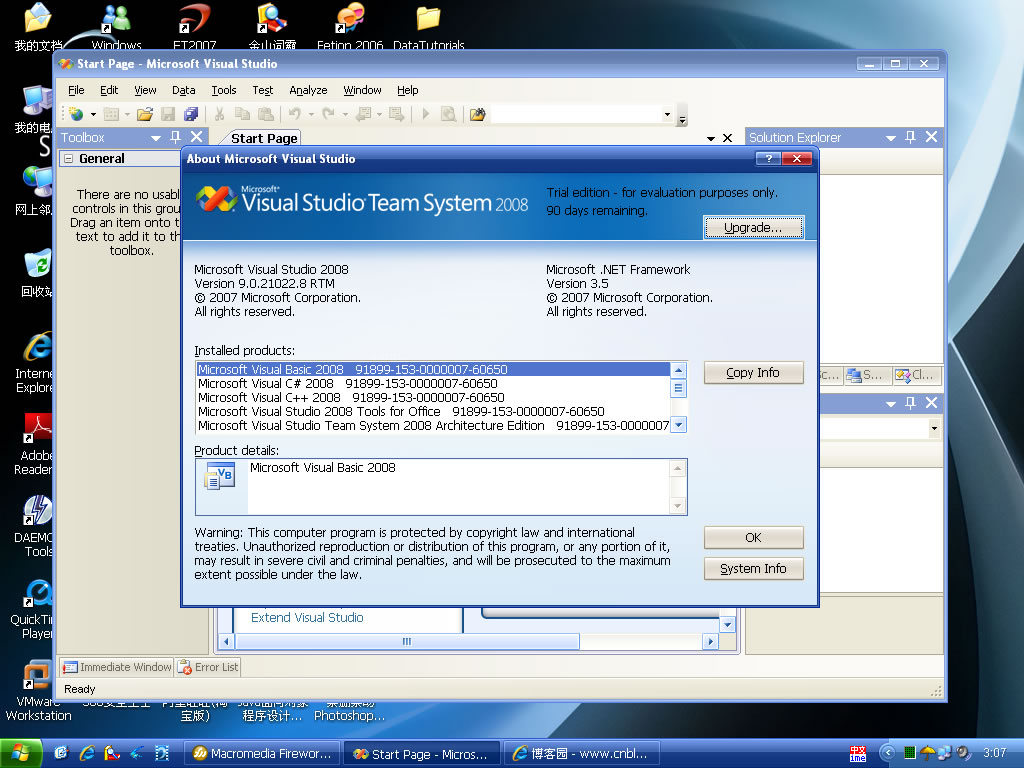 VS2008的默认启动界面,我们再来看看它的版本信息