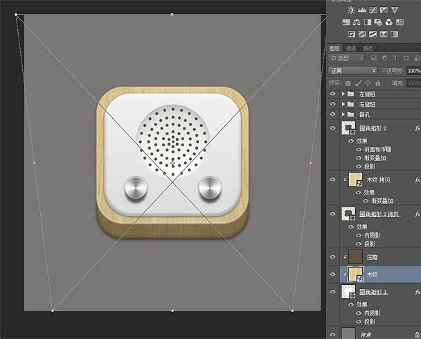 19、不过如果仔细看,会发现这个图标的木纹还有问题,所以最后来做一下简单的透视。