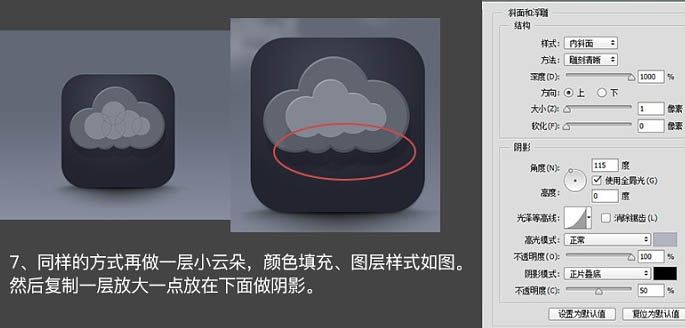 7、同样的方法再做一层小云朵,颜色填充,图层样式如图。然后复制一层放大一点,放在下面做阴影。