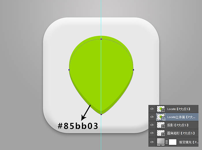 12、复制一层定位的形状,置于这层的下层,更改颜色为#85bb03,我们来构建立体面。
